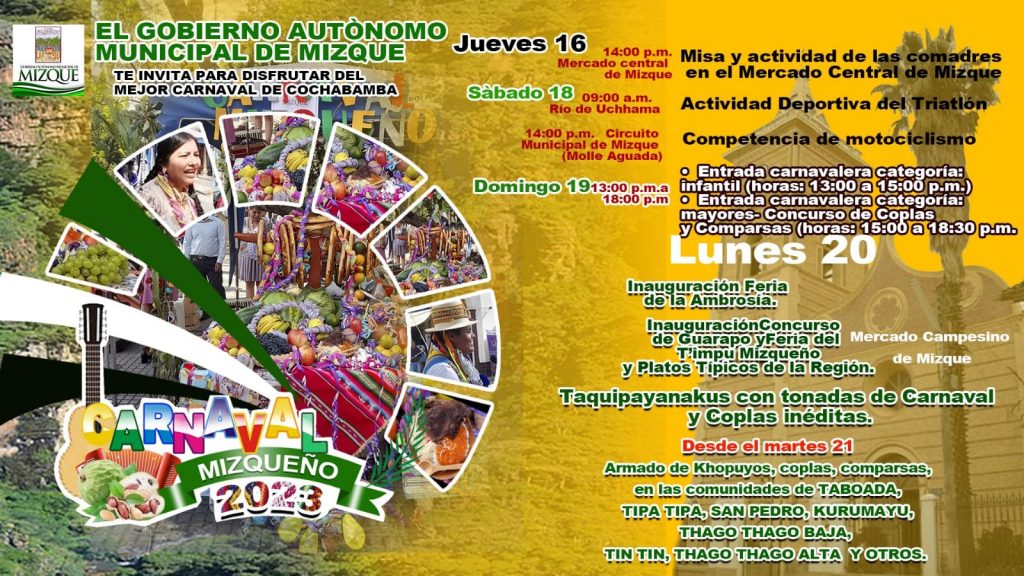 Del 19 de Febrero al 26 – Lugar: Mizque